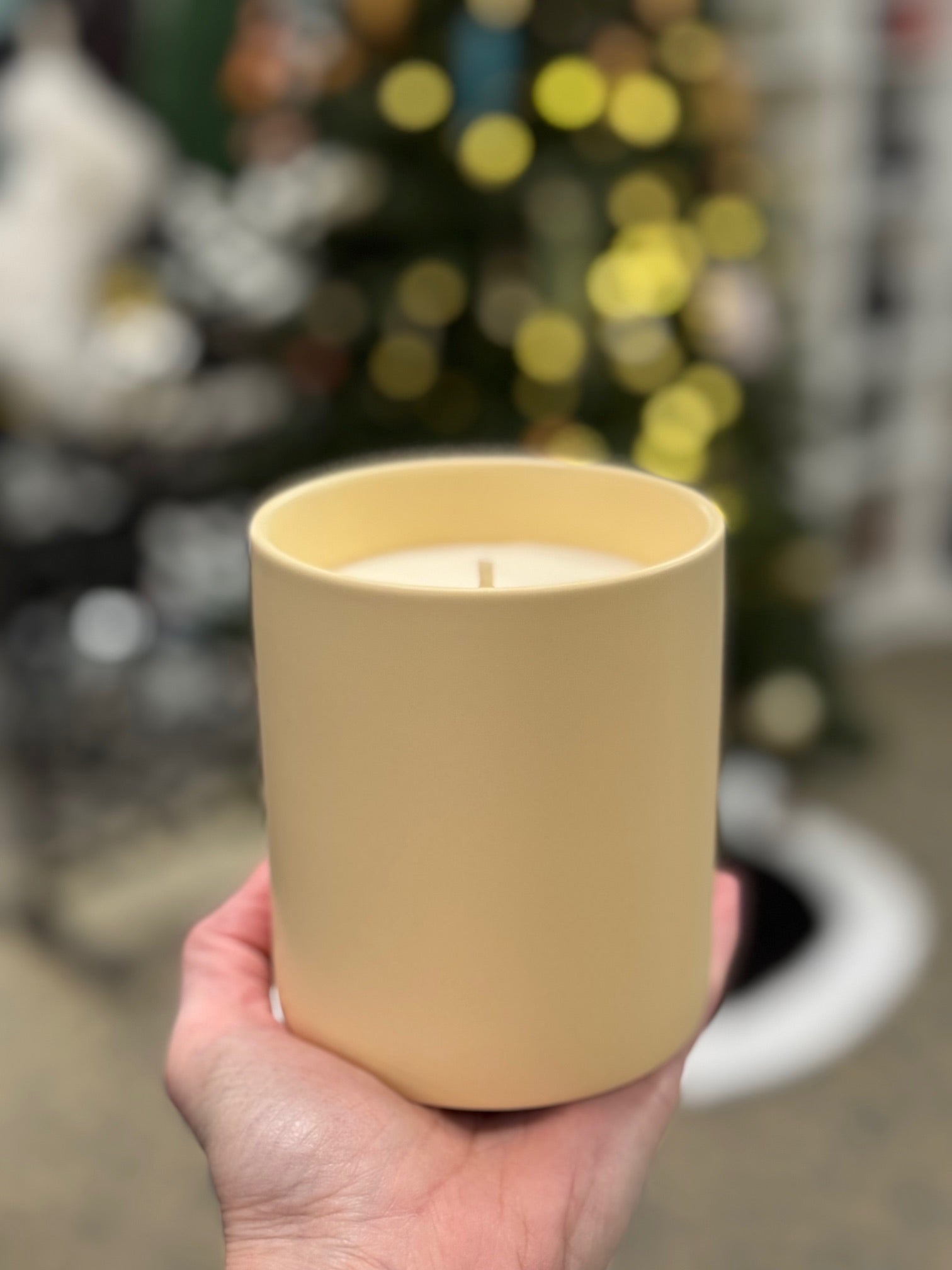 Our luxury soy candles are hand poured into a buttercream ceramic vessel and is packaged in a black box, ready to give as a gift, or keep for yourself.
