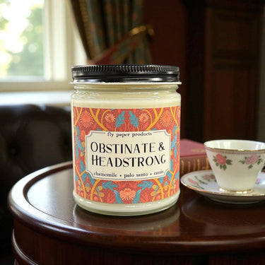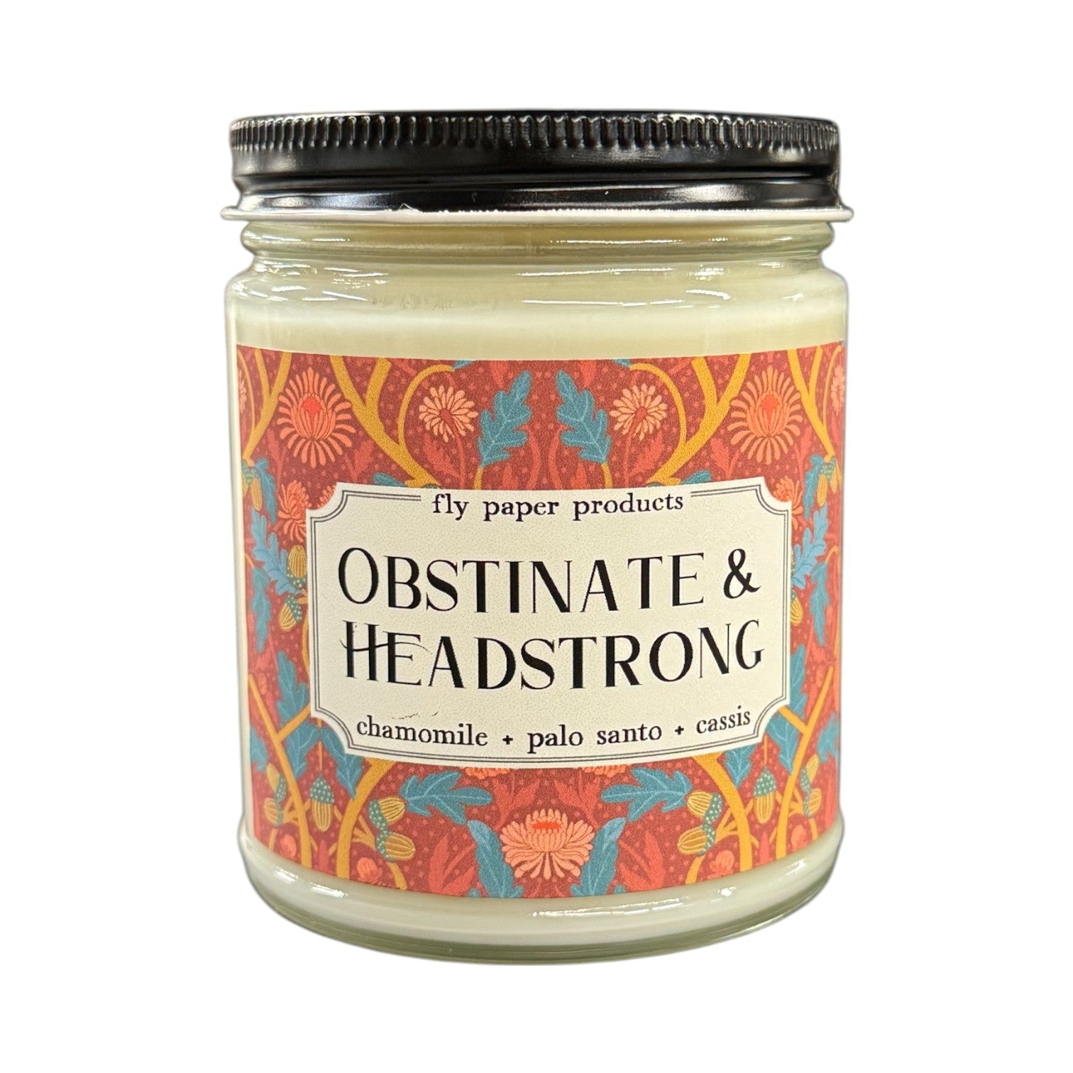 Obstinate and Headstrong 9oz Candle- Chamomile + Palo Santo + Cassis