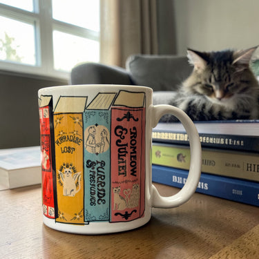 Book Spine Mug - MEOWsterpieces of KITerature- Cats, Coffee & Books