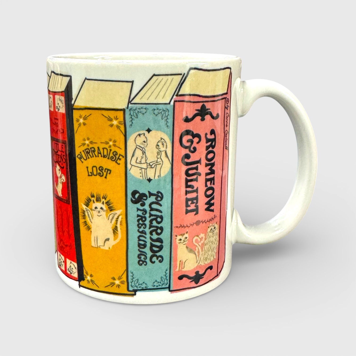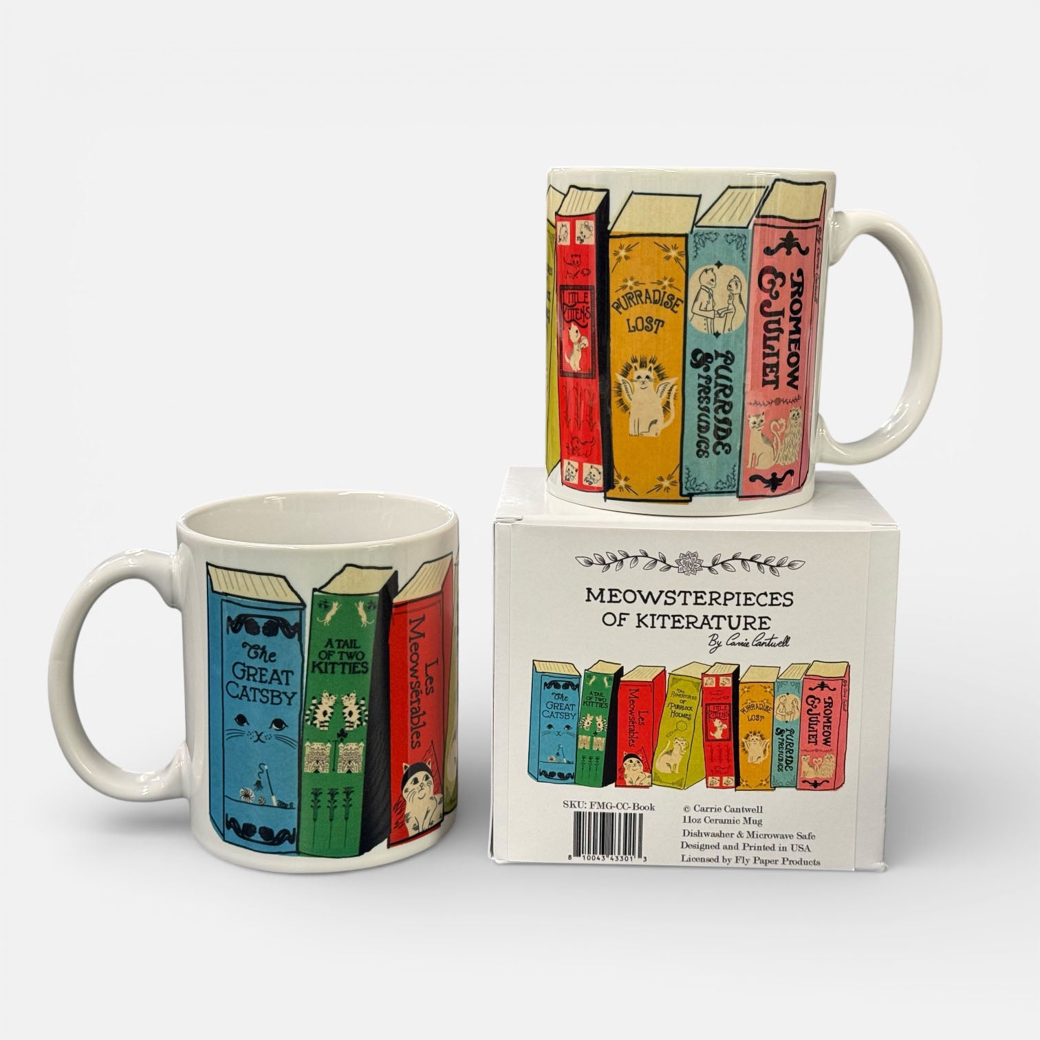 Introducing Meowsterpieces of Kiterature — our newest ceramic coffee mug featuring hand-drawn illustrations by the wildly talented artist Carrie Cantwell.