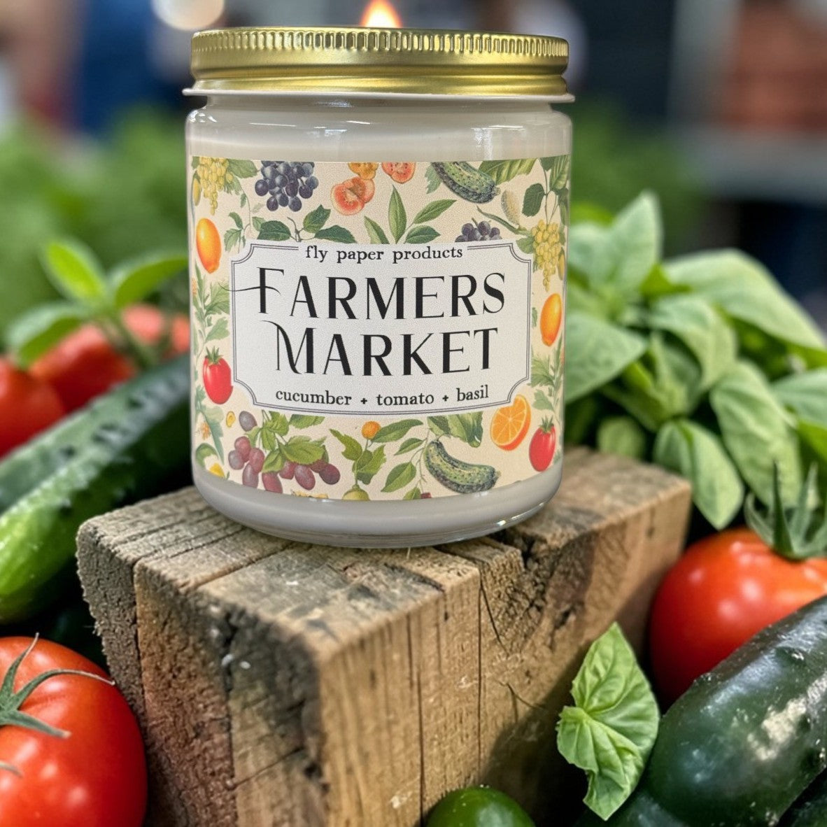 Farmer's Market stalls overflowing with the bounties of spring and summer- what could be better? Our candle brings that fresh and vibrant feeling to you with snappy cucumber, luscious tomato and fresh basil scents.