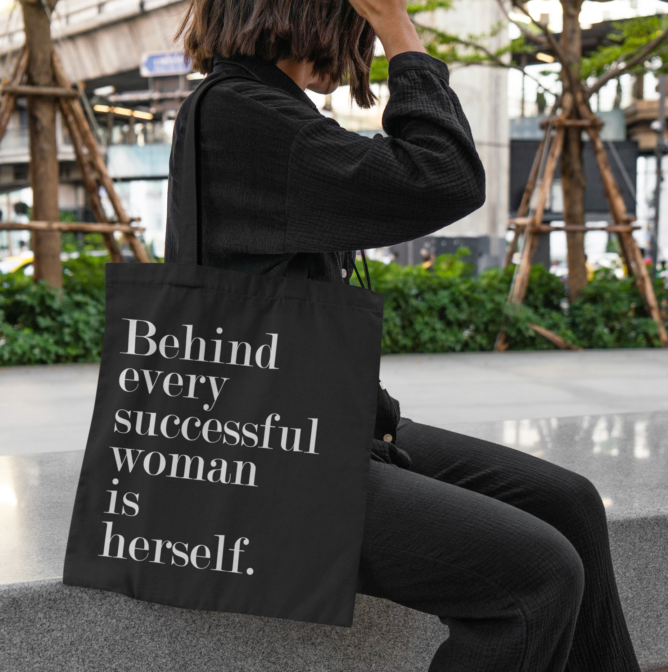 Behind every successful woman is herself." Black Cotton Weekender Bag