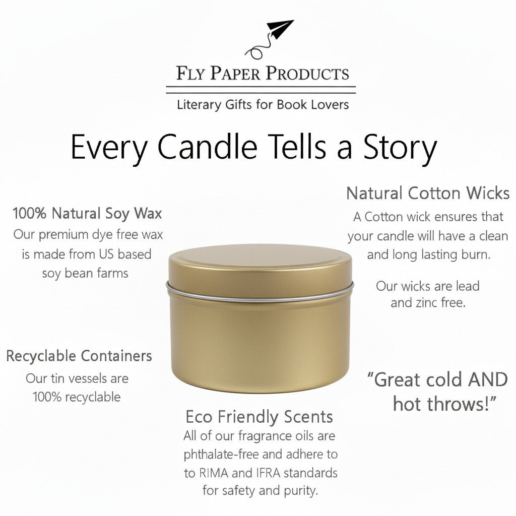 Our literary candles are perfect for any book and candle lover. The candles were inspired by my love of libraries, books and bookstores, and the stories that take us on each adventure. A candle is the perfect thing to snuggle up and get lost into the pages of a book with.