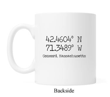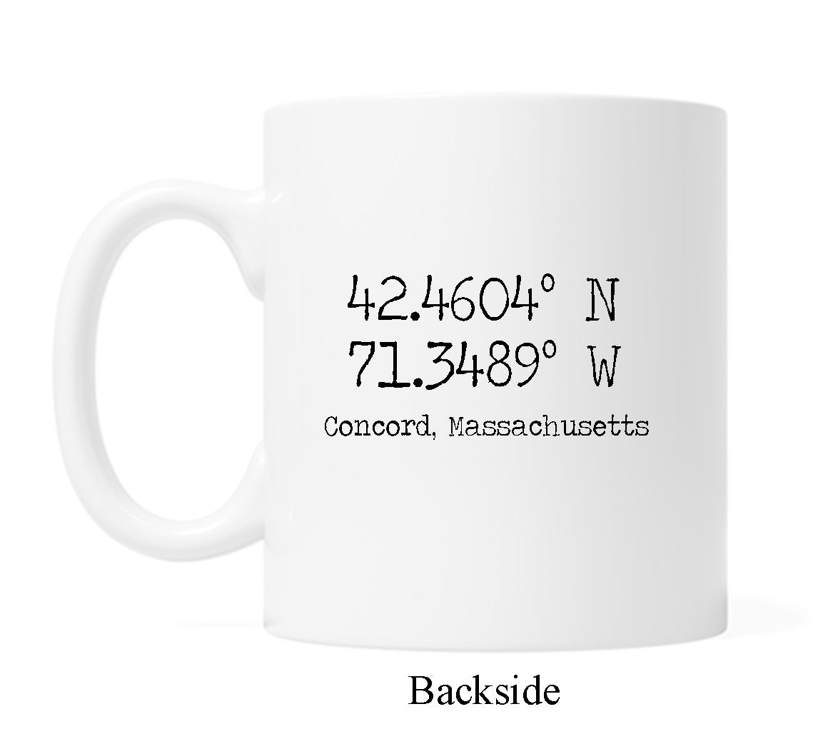 This is a custom order for 6 Concord, Massachusetts mugs.